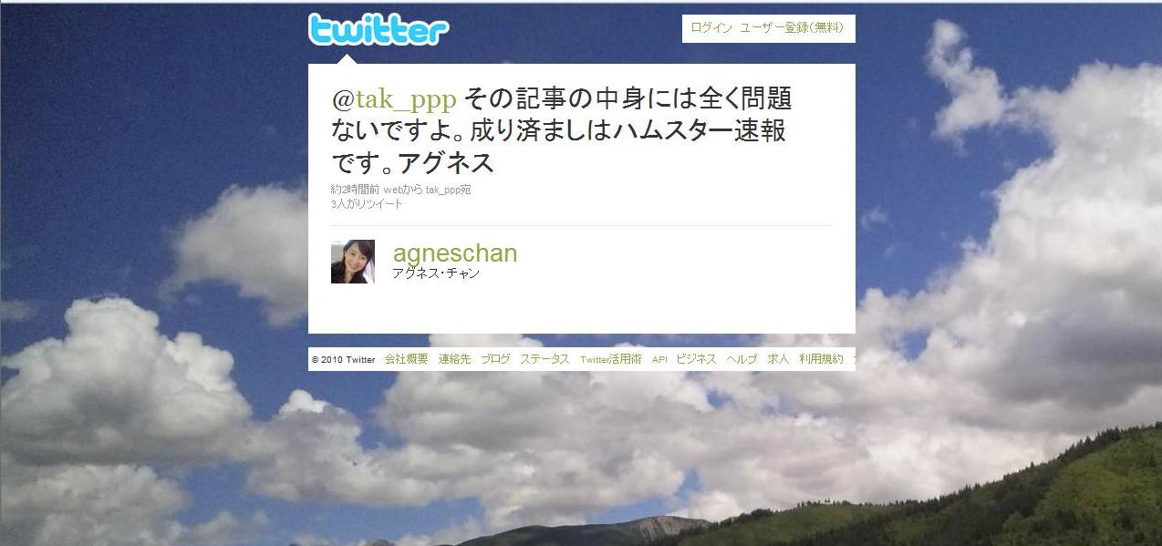 その記事の中身には全く問題ないですよ。成り済ましはハムスター速報です。アグネス